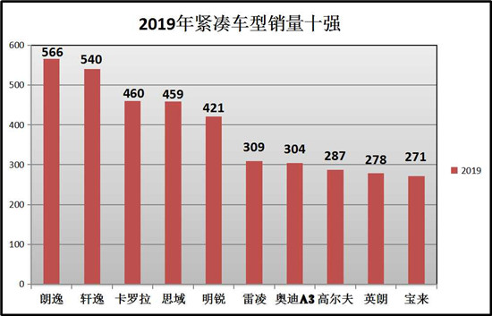 在紧凑车型销量排行上:朗逸、轩逸、卡罗拉、思域、明锐、雷凌、奥迪A3、高尔夫、英朗、宝来分别以:566台、540台、460台、459台、421台、309台、304台、287台、278台、271台荣获太仓紧凑型车的销量前十。