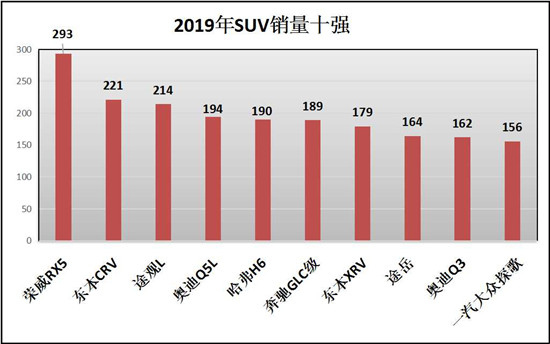 在SUV的销量排行上,荣威RX5、东风本田CRV、途观L、奥迪Q5L、哈弗H6、奔驰GLC、东风本田XRV、途岳、奥迪Q3、一汽大众探歌分别以:293台、221台、214台、194台、190台、189台、179台、164台、162台、156台荣获太仓SUV销量的前十名。