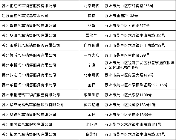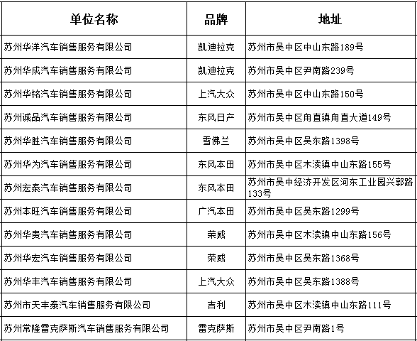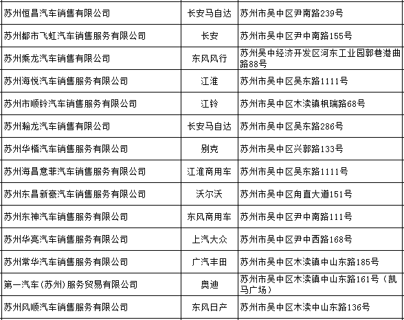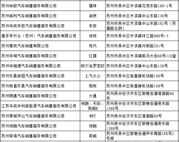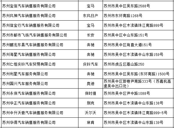 【合作汽车商家目录】